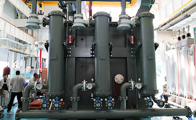 我國最大的電弧爐變壓器140MVA,配我們公司生產的YSFG-630X3兩重管冷卻器