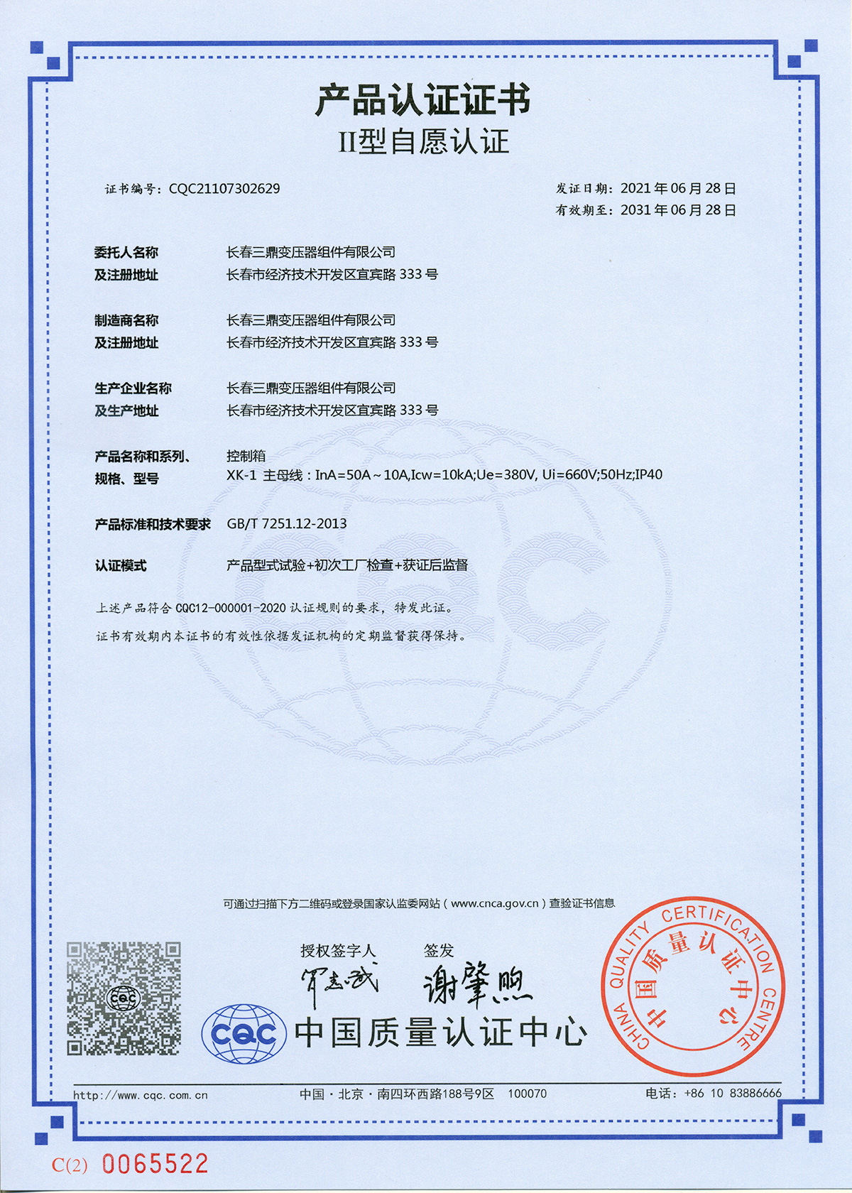 我公司XK-1型電氣控制箱獲得中國質量認證中心CCC認證